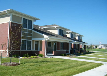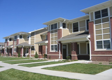 All two bedroom, two bath apartments are in 8-plex configurations with private exterior entrances. Detached garages are available. Several wheelchair accessible apartments are available. The three bedroom, two and one-half bath townhouse comes with an attached garage and full basement. One-half of the apartments are available at reduced rent to income eligible families through the tax credit program and one-half are available at Market Rents.